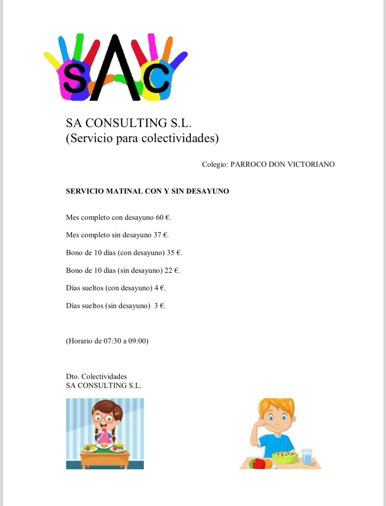 Si necesitais dejar a vuestros hijos en el cole antes de la hora de entrada habitual, desde el AMPA ofrecemos el servicio de matinal (también conocido como ampliación de horario de mañana, o los primeros del cole)